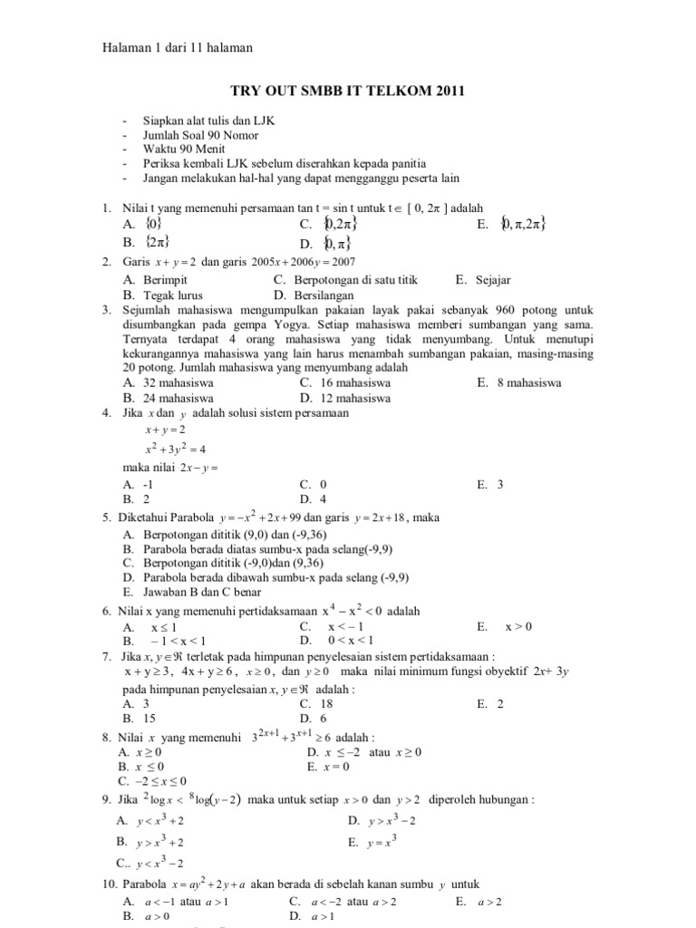 Latihan soal sbmptn bahasa inggris. Kumpulan soal ujian stt telkom 1 kumpulan soal ujian stt telkom 2 pembahasan matematika soal 1 pembahasan fisika soal 1 soal baru. Bedanya dengan jalur lain adalah kalau lolos di jalur ini kalian bakalan dapetin beasiswa penuh sampai lulus (beasiswa uang semester dan uang masuk) tapi dengan memenuhi syarat yang berlaku yaa. About press copyright contact us creators advertise developers terms privacy policy & safety how youtube works test new features press copyright contact us creators. Belajar ala clinic genius 92805 views.